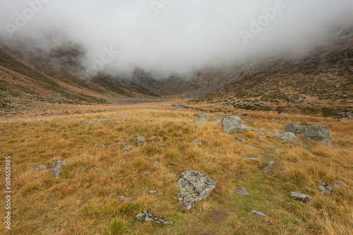 alps, alone, autumn, cloudy, environment, fall, grass, hiking, italy, meadow, misty, nature, no people, panorama, path, peace, relax, scene, trekking, yellow