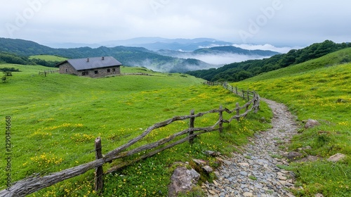 mountain, pasture, farm, house, vale, landscape, rural, scenic, nature, countryside, green, travel, hill, grass, view, meadow, cabin, wildlife, hiking, trekking, peaceful, calm, idylli, rustic, wooden, fence, path, explore, adventure, vacation, natural, tour tourism, freedom, tranquil, relaxing, wildflower