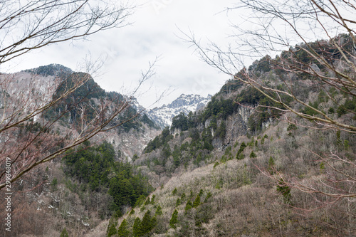 day, tree, travel, park, national, cable car, low angle, framing, between, looking up, view, peak, trail, cloudy, brown, bare, range, mountain, japan, alps, nature, canyon, sky, landscape, forest, hida, winter, snow, takayama, asia, season, japanese, alpine, timberland, hot spring, hiking, cold, rural, asian, countryside, village, vale, high