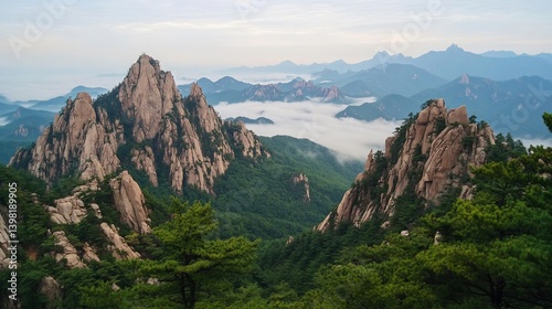mountain, peak, mist, vale, landscape, nature, scenic, view, travel, hiking, adventure, cloud, fog, rocky, green, forest, tree, pine, asia, korea, south korea, mountain, elevation, outdoors, explore, tour tourism, view, scenery, breathtaking, wonder, peaceful, serene, amazing, beautiful, stunning, photo, picturesque, gorgeous, excursion, exploration