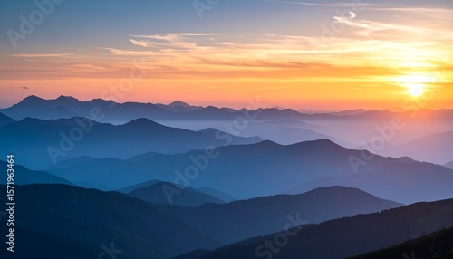 Mountain Ridge Landscape at Sunset with Layered Peaks