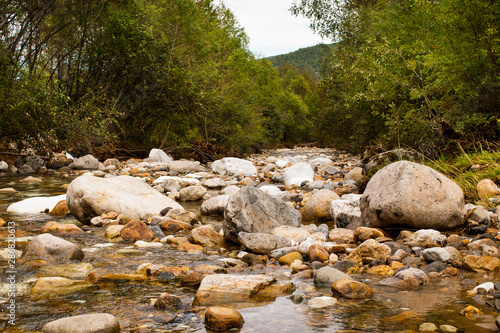 mountain, river, quickly, flow, stone, coppice, run, stream, riverside, landscape, scenery, current, rock, small, outdoors, outside, summer, autumn, fall, white, brown, bush, tree, branch, dense, nature, wild, forest, flora, dry, leaf, vacation, holiday maker, tour tourism, travel