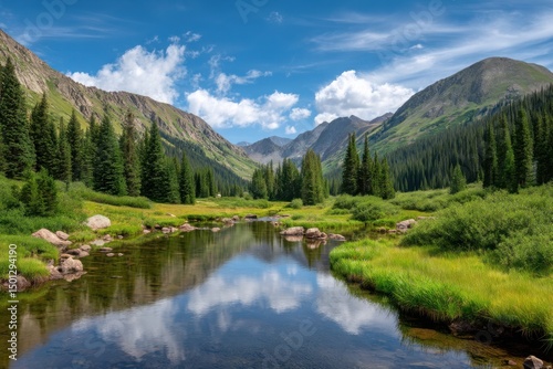 transparent, river, mountain, landscape, scenery, tree, nature, water, vale, sky, cloud, forest, grass, stream, rock, summer, green, travel, peak, sunlight, flora, hill, terrain, altitude, outdoors, environment, daylight, foliage, white, background, serene, clear, lush, tall, line