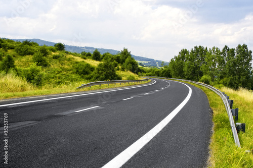 scenery, highway, landscape, mountain, road, countryside, rural, view, asphalt, nature, nobody, route, green, country, drive, empty, forest, freedom, roadway, travel, transportation, tree, trip, sky, way, speed, grass, traffic, expressway, transport, dawn, destination, journey, summer, spring, speedway, sun, sunny, sunrise, meadow, motion, horizon, cloudy, blue, cloud