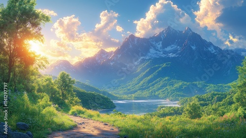 mountain, road, landscape, travel, nature, view, path, green, sky, blue, cloud, scenic, hiking, summer, cliff, adventure, journey, panorama, beautiful, trail, edge, high, alpine, meadow, grass, background, water, peak, tour tourism, route, vale, drive, holliday, rural, stone, top, extreme, asphalt, street, day, scenery, fluffy, land, lush, pathway, mountain, golden hour