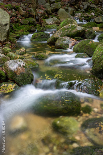 Mountain stream with stones with clear water