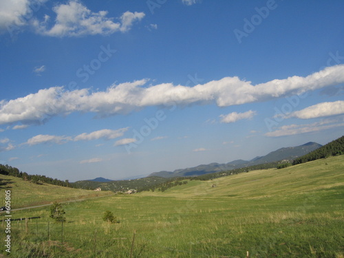 mountain, vale, meadow, evergreen, colorado, open space, expanse, blue skies