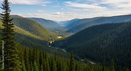 mountain, vale, river, landscape, nature, scenery, forest, tree, wood, coniferous, evergreen, pine, fir, wilderness, panorama, view, aerial, drone, photo, travel, adventure, scenic, beautiful, picturesque, calmness, serenity, summer, sunlight, blue skies, cloud, green, ecology, environment, wildlife, remote, majestic, breathtaking, canada, british columbia, wellness, background