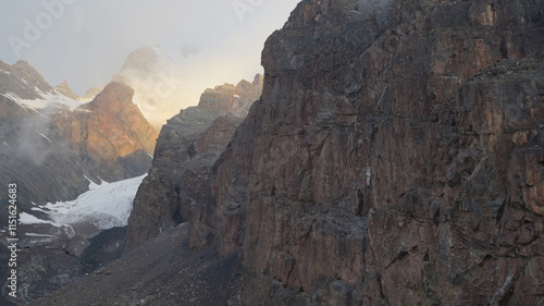 mountain, rock, alpine, alpinism, central asia, tajikistan, landscape, sky, cloud, nature, rock, mountain, cliff, travel, peak, view, scenic, rocky, geology, tree, climb