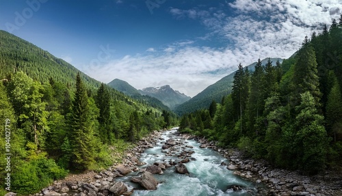 river, mountain, nature, water, landscape, forest, stream, mountain, summer, sky, green, tree, rock, waterfall, vale, tree, alps, rock, travel, creek, park, canyon, flowing, hiking, beautiful