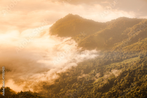 mountains under mist in the morning in Phuchifa chiang rai,Thail