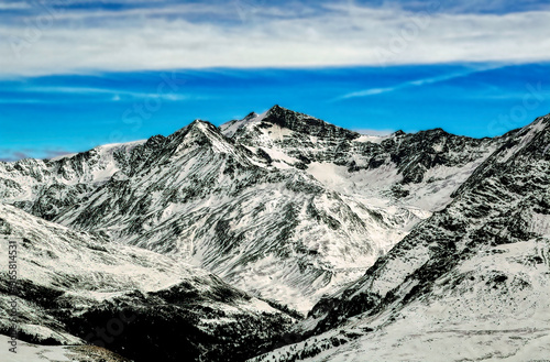 Mountains under snow during winter in Dolomites, North Italy, Bormio region.