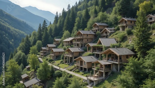 Mountainside Chalet Village: Serene Wooden Homes in a Verdant Valley