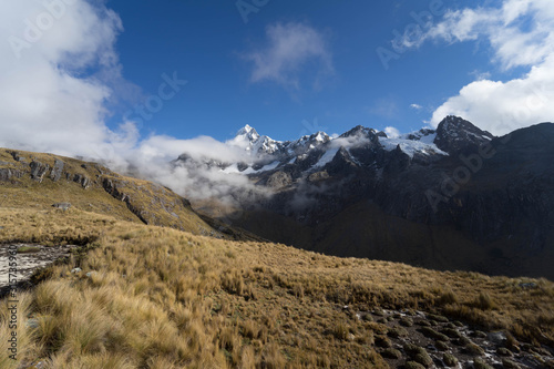 mountain, landscape, sky, nature, mountain, snow, travel, peak, blue, cloud, high, view, vale, rock, cloud, panorama, trekking, alps, park, scenic, scenery, path, winter, range, tour tourism, grass, autumn, field, beauty, national, meadow, peru