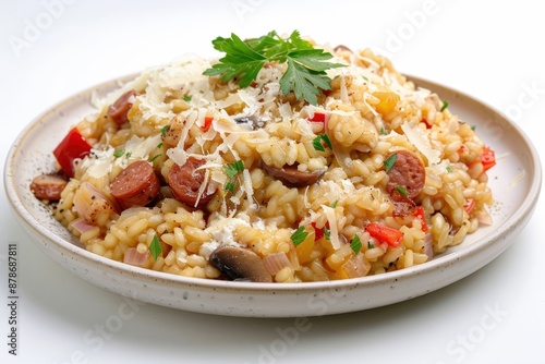 isolated, white, plate, background, parmesan cheese, italian cuisine, risotto
