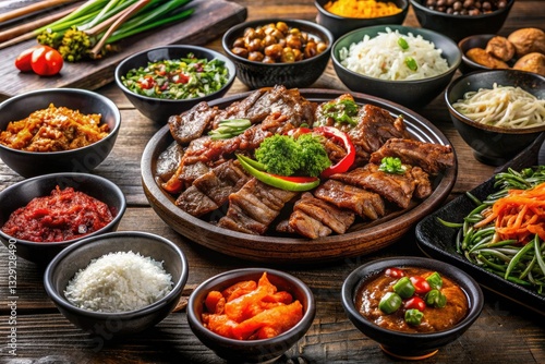 Mouthwatering Korean BBQ: Bulgogi, kimchi, and banchan shine in this breathtaking food photography.