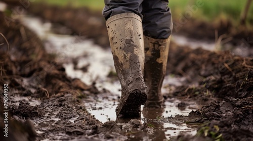 muddy, boot, wet, farmland, mud, trekking, field, agriculture, farming, dirtied, rubber, walking, countryside, farm, work, earthy, nature, dirty, rural, scene, puddle, seasonal, labor, terrain, plowing, overcast, moisture, lifestyle
