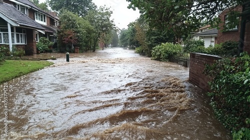 Muddy floodwaters encroach on suburban streets a striking visual of nature's power and impact on communities