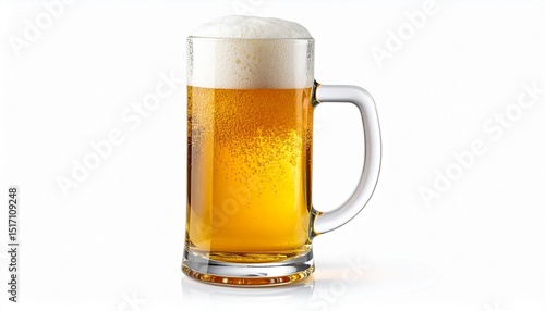 Mug with beer on white background with clipping path