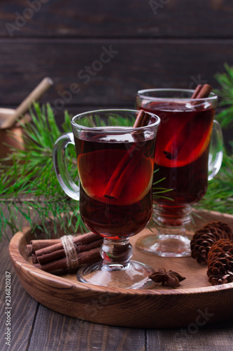 Mulled wine, cinnamon sticks, anise stars, fir cones and branches
