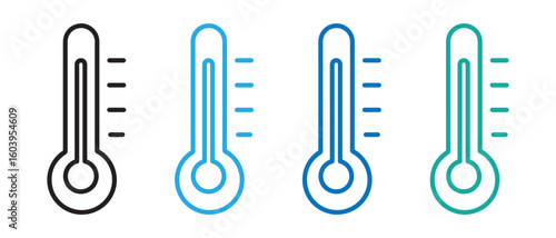 Multicolor Thermometer Icon Set. Visual Representation of Temperature Measurement in Modern UI Design.