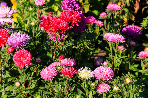 abundance, annual, arrangement, aster, asteraceae, autumn, background, beautiful, bloom, blossom, botanical, botany, bright, colours, colourful, decorative, delicate, different, elegance, fall, flora, floral, flower, flowerbed, foliage, fragility, fresh, garden, gardening, green, growth, horticulture, lush, many, nature, ornamental, outside, park, pink, plant, purple, red, romance, september, summer, vegetation, vibrant, violet, high-coloured