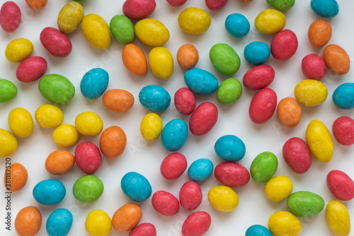 multicolored candy on a white background close-up
