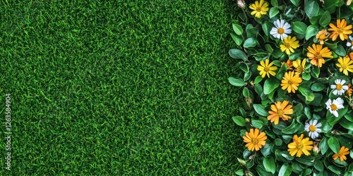 flowerbed, red flower, blue flower, copy space, yellow flower, colourful, landscaping, decorative, garden, floral, vibrant, bright, park, symmetric