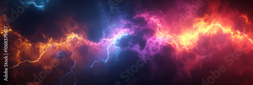Multi-colored lightning, panorama wallpaper, the beauty of natural phenomena