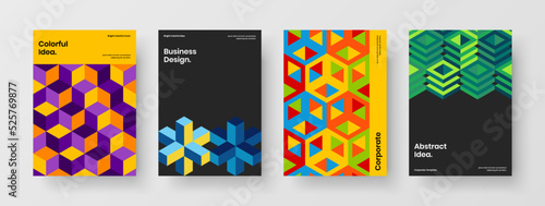 Multicolored mosaic shapes catalog cover template set. Creative company identity vector design concept collection.