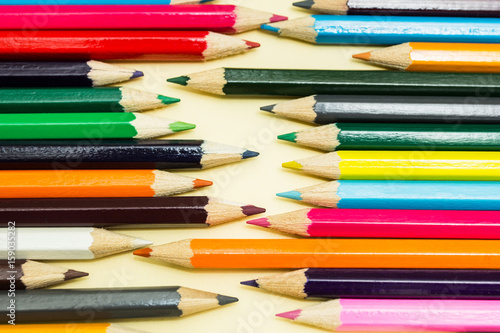 Multicolored pencils on a pastel yellow background