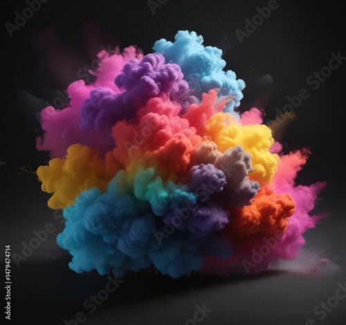 Multicolored powder cloud, intense dark contrast , splash, explosion