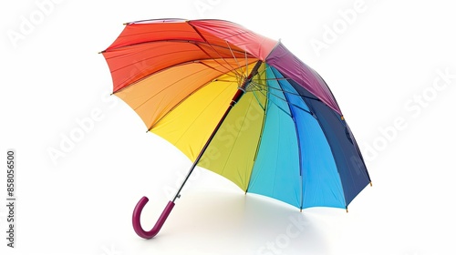 Multi-colored umbrella with a curved handle, isolated on white