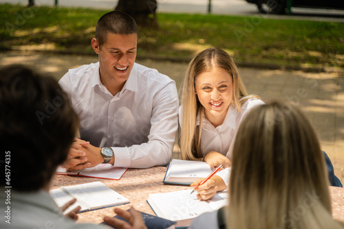 academic, break, campus, collaboration, college, discussing, diverse, education, exam, faculty, friends, group, happy, high school, learning, man, multicultural, outdoors, outside, people, preparing, result, school, sitting, student, studying, successful, teamwork, together, university, yard