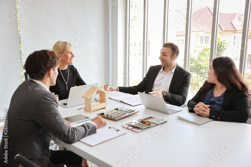 Multiethnic business people discussing company about new house project in meeting room with smiling and happy faces
