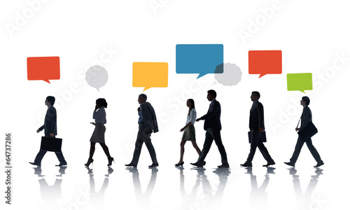 Multiethnic Business People Walking in a Row with Speech Bubble