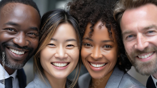 Multiethnische Gruppe von lächelnden Geschäftsleuten in Nahaufnahme.