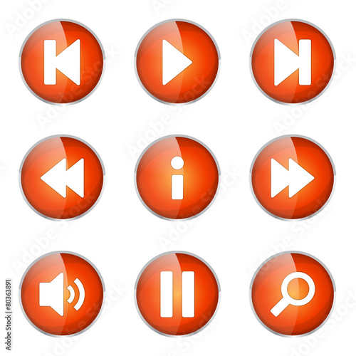 web button, orange, icon, set, collection, cyberspace, web, web icon, symbol, shape, graphic, signs, vector, design, digital, isolated, illustration, play, pause, search, sound, info, next, back, forward, reverse, multimedia, controller, arrow