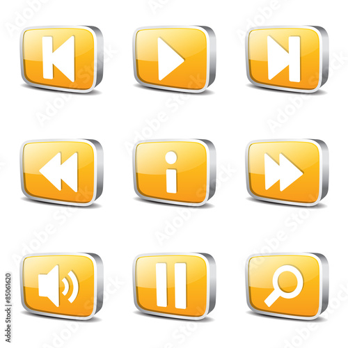 three-dimensional, web button, yellow, icon, set, collection, cyberspace, web, web icon, symbol, shape, graphic, signs, vector, design, digital, isolated, illustration, play, pause, search, sound, info, next, back, forward, reverse, multimedia, controller, arrow