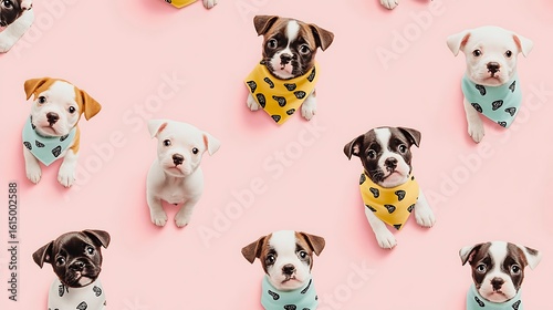 Multiple dogs wearing polka dot prints sitting happy high resolution picture