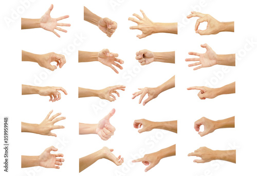 multiple hand with gestures of asian man for symbol to show out isolated on white background