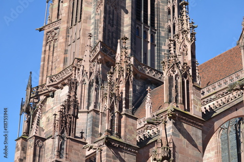 minster, freiburg, cathedral, church, sandstone, cupola, catholic, christian, christianity, religion, swimming, german, detail, tower, church steeple, romanesque, stone, building, our, love, woman, black forest, window, watch, rosette, roman, bishop, historic, aged, memorial
