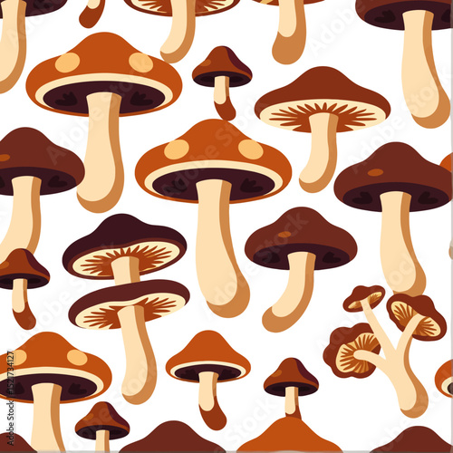 Mushroom Pattern Background - Whimsical Fungi Illustration - Forest Floor Design with Brown and Beige Colors - Nature Inspired Wallpaper - Seamless Mushroom Print