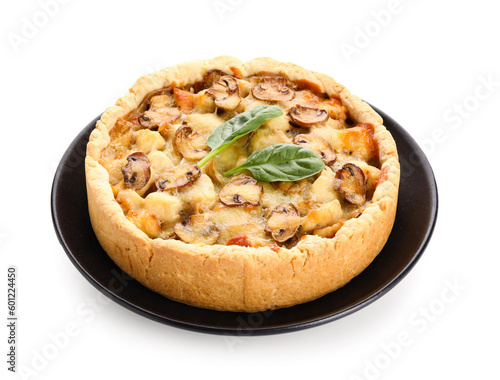 leaf, mushroom, pie, plate, spinach, white, background, baked, breakfast, champignon, cheese, colours, cook, cookery, cooking, culinary, delicious, dinner, dish, eating, food, fresh, healthy, homemade, hot, ingredient, isolated, lunch, meal, mushroom, nobody, nourishment, object, pastry, quiche, receipe, snack, tart, tasty, vegan, vegetable, vegetarian, vegetarian