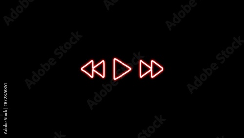 Music arrow button symbol on black background. neon arrow sign. Play or pause button. Neon line music sign illustration on the black background.