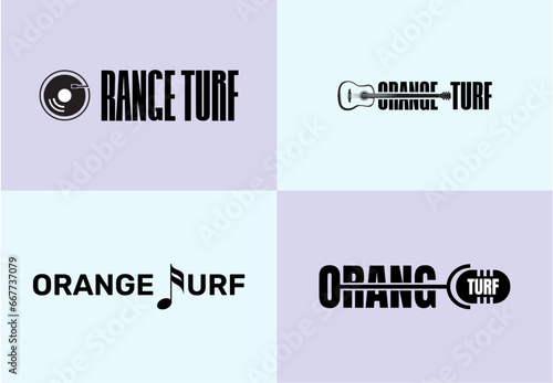 music logo, orange turf logo, guitar, mic, pictogram logo