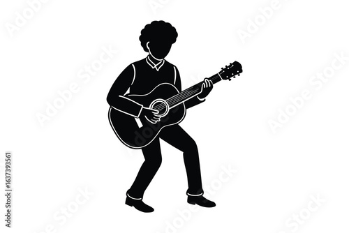 guitar, acoustic guitar, musician, music, player, silhouette, black-and-white, illustration, vector, art, performance, entertainment, song, melody, musical instrument, string instrument, guitarist, concert, stage, show, artist, creative, design, graphic, isolated, drawing, clip art, man, person, male, style, musical, passion, talent, culture, lifestyle, hobby, practice, studio, sound, audio, single, white background, simple, minimalist, outline, shape