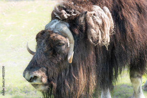 alaska, musk, ox, herbivore, portrait, northern, timberland, closeup, ox, hair, hairy, fur, furry, horn, stout, strong