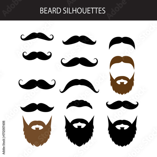 Mustache and beard silhouette icon set for men's grooming and style