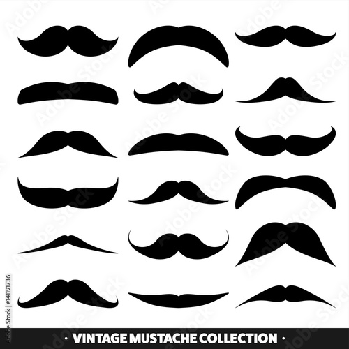 Mustache isolated on white. Black vector vintage moustache. Facial hair.Barber shop. Retro collection. Hipster beard.